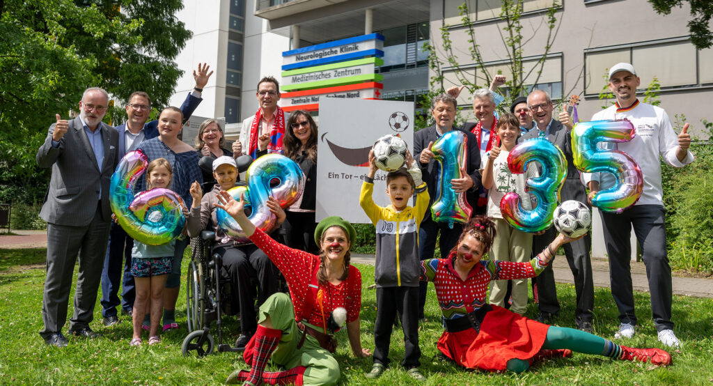 Der Erlös von „Ein Tor – ein Lächeln“ hatte gleich zwei Spendenzwecke. Zum Einen floss ein Teil des Geldes in die Finanzierung der Klinikclowns, die mit ihren Besuchen in den Patientenzimmern der Kinderklinik an der Universitätsmedizin Essen eine fröhliche Abwechslung in den Klinikalltag bringen. Zum Anderen unterstützten die Spenden die medizinische Ukraine-Nothilfe.