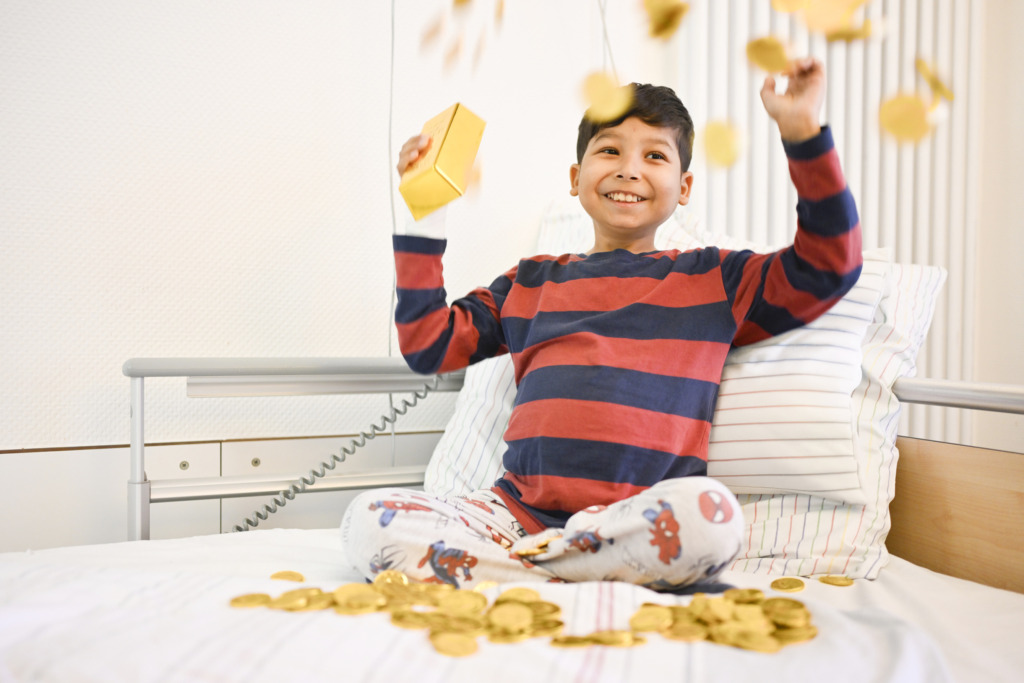 Der erlös des Gold-Spende-Tags ist für kranke Kinder in der Kinderklinik der Universitätsmedizin Essen bestimmt. Spenden ermöglichen hier beispielsweise die Besuche der Klinikclowns, oder zusätzliche Angebote wie Therapie mit Tieren. In der Sie haben keine Möglichkeit oder keine Zeit, einen Schuhkarton zu packen, möchten aber dennoch helfen? Kein Problem! Die Stiftung Universitätsmedizin unterstützt zahlreiche Angebote, die den jungen Patientinnen und Patienten zugutekommen. In der neuen Kinderklinik ermöglichen Spenden zusätzliche Ausstattungsdetails wie virtuelle Raumwelten, oder kindgerechte Ruhebereiche, die dafür sorgen, dass die Kinder trotz Erkrankung vor allem Kind sein können.