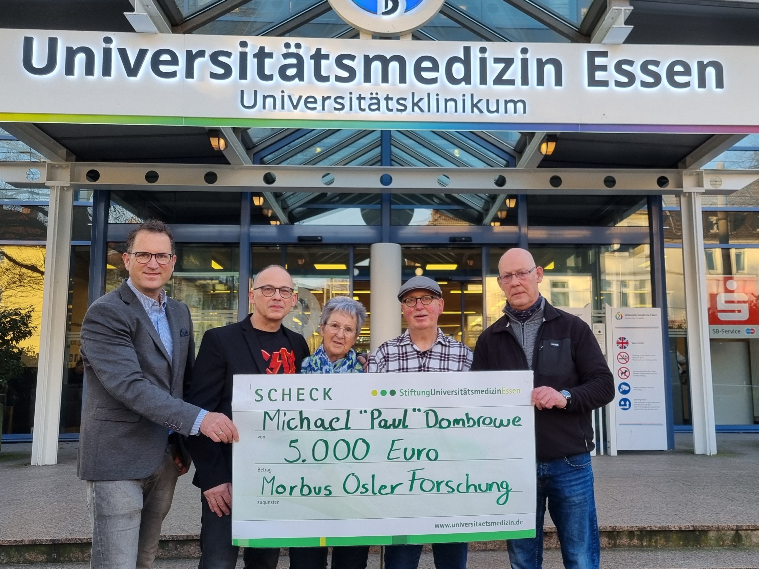 Spende aus dem Vermächtnis von Michael „Paul“ Dombrowe für die Forschung an der Universitätsmedizin Essen Emanuel Dombrowe hat gemeinsam mit drei weiteren Geschwistern eine Spende