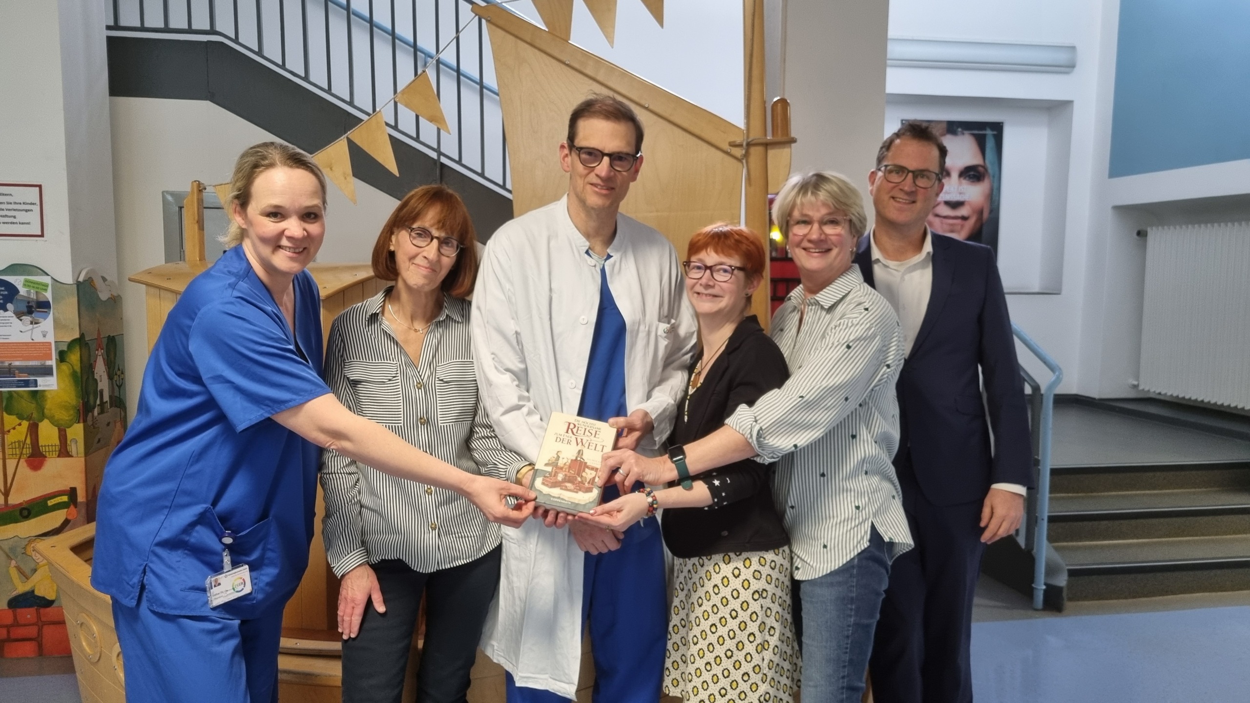 Ehrenamtliche der KÖB St. Kamillus überreichen Erlös eines Bücherflohmarktes an die Stiftung Universitätsmedizin Mit einer Spende in Höhe von 2.700 Euro unterstützen die Ehrenamtlichen der